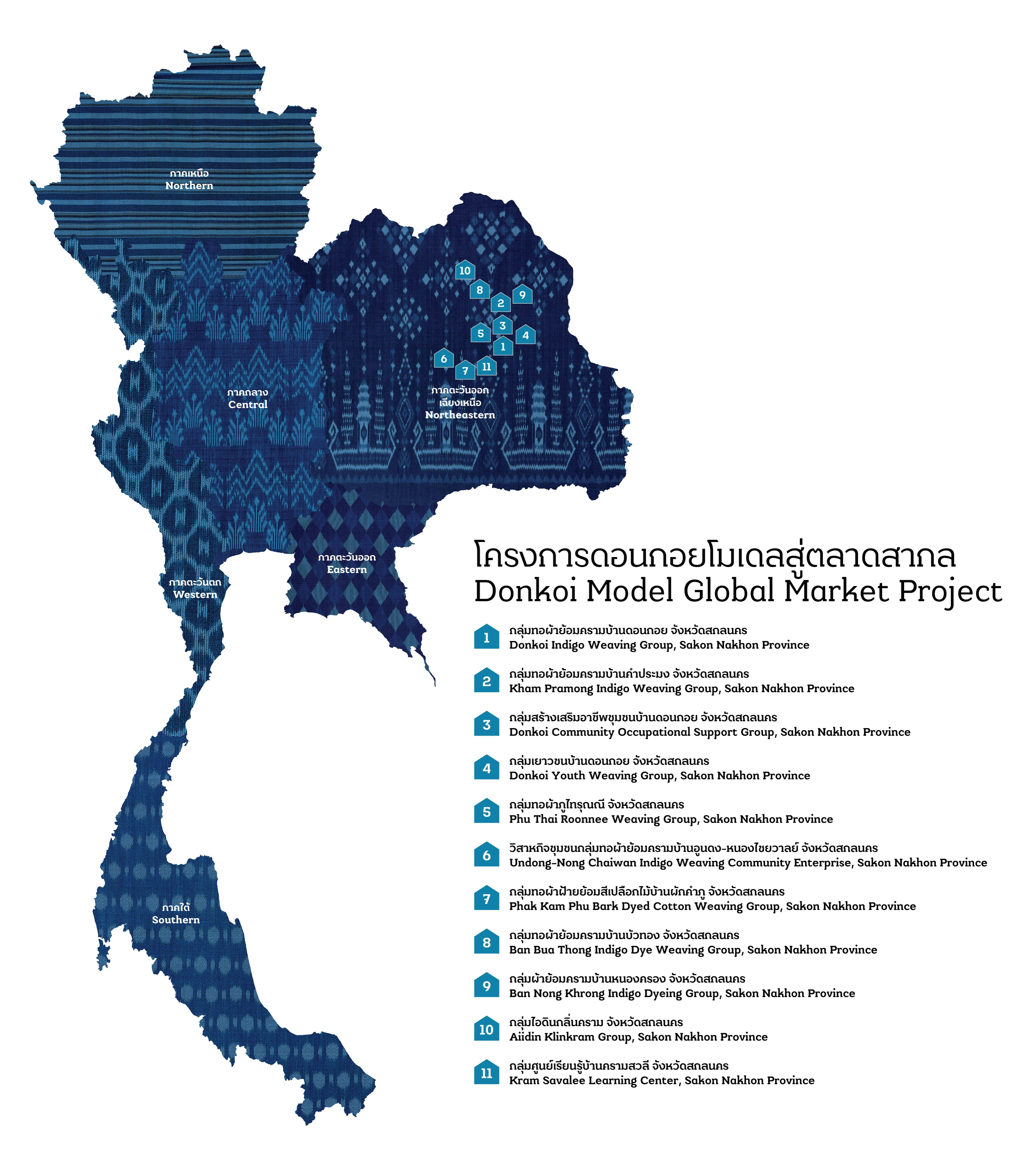 ดอนกอยโมเดลสู่ตลาดสากล หนึ่งในโครงการพระดำริ Sustainable Fashion : แฟชั่นแห่งความยั่งยืน ใน สมเด็จพระเจ้าลูกเธอ เจ้าฟ้าสิริวัณณวรี นารีรัตนราชกัญญา เป็นโครงการกลุ่มทอผ้าต้นแบบ มุ่งวางรากฐานการยกระดับภูมิปัญญาการสร้างสรรค์ผืนผ้าและผลิตภัณฑ์สู่ตลาดสากลอย่างครบวงจร ขับเคลื่อนและขยายผลโดย กรมการพัฒนาชุมชน กระทรวงมหาดไทย ส่งผลให้ในปัจจุบัน สมาชิกโครงการดอนกอยโมเดลสู่ตลาดสากล ได้ผลิตผ้าย้อมครามที่มีลวดลายร่วมสมัย ต่อยอดภูมิปัญญาการย้อมสีเส้นใยด้วยวัตถุดิบธรรมชาติภายในชุมชน ตลอดจนพัฒนาด้านการตลาดและบรรจุภัณฑ์ ที่ถ่ายทอดเอกลักษณ์และความเป็นมาของบ้านดอนกอย สร้างภาพลักษณ์ใหม่ให้กับผ้าไทย
