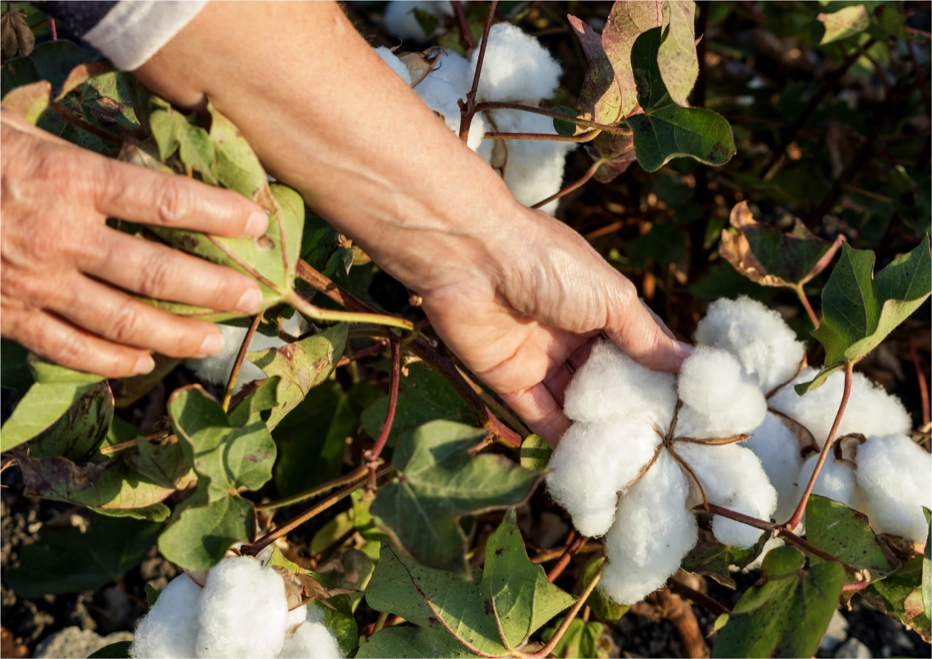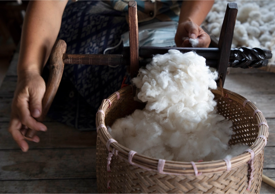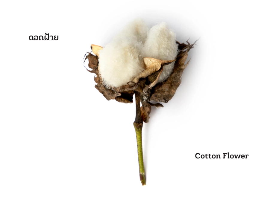 เส้นใยฝ้าย ได้รับความนิยมนำมาถักทอเป็นผืนผ้า เพราะมีเส้นใยที่นุ่ม โปร่งสบาย ระบายอากาศได้ดี เหมาะกับสภาพอากาศร้อนของไทย ต้นฝ้ายยังเป็นพืชที่ทนทานต่อความแห้งแล้ง ส่วนที่ให้เส้นใยได้แก่ ส่วนที่เป็นผลสีเขียวอ่อนของฝ้ายที่มีลักษณะกลม ผิวเรียบ หรือที่เรียกว่า “สมอฝ้าย” เมื่อผลแก่จะเป็นสีดำและปริออก เผยให้เห็น “ปุยฝ้าย” คือเส้นใยสีขาว ที่นำมาใช้ในการปั่นเป็นเส้นใยฝ้าย