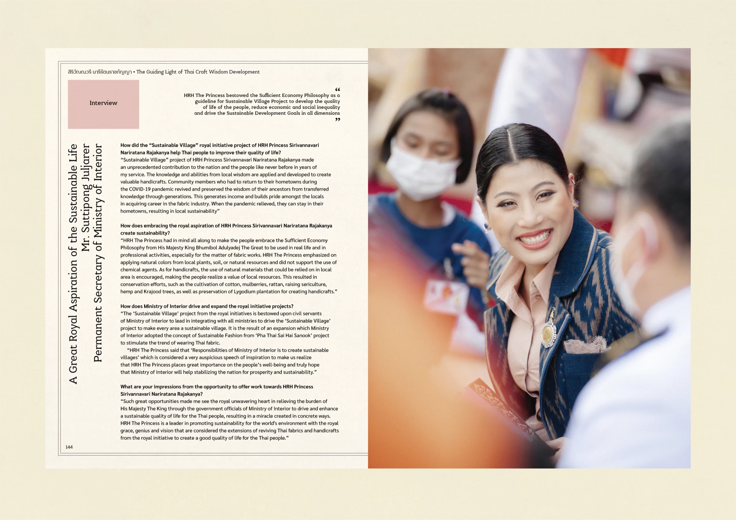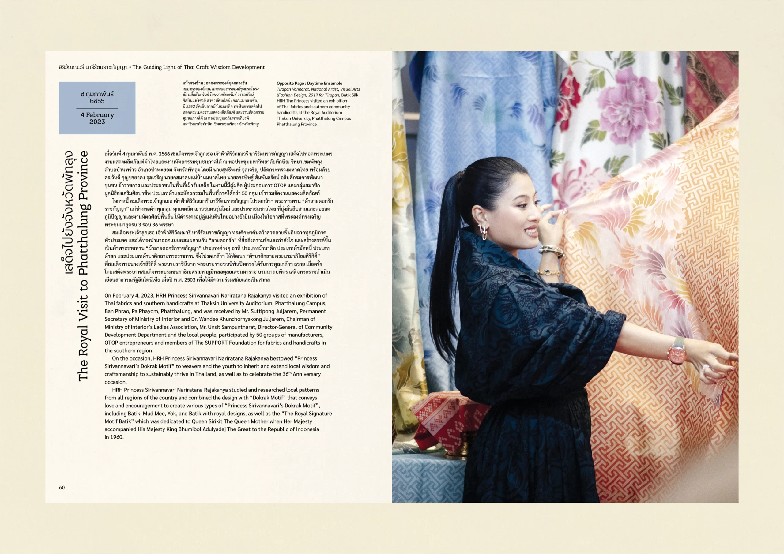 สมุดภาพเฉลิมพระเกียรติ สมเด็จพระเจ้าลูกเธอ เจ้าฟ้าสิริวัณณวรี นารีรัตนราชกัญญา สร้างสรรค์โดย สำนักงานปลัดกระทรวงมหาดไทย มุ่งเผยแพร่พระวิสัยทัศน์และพระอัจฉริยภาพในการฟื้นคืนภูมิปัญญาผ้าและหัตถศิลป์พื้นถิ่นของไทยให้มีความร่วมสมัยและเป็นที่ยอมรับในระดับสากล ผ่านแนวพระดำริฯ “Sustainable Fashion : แฟชั่นแห่งความยั่งยืน” ถ่ายทอดเรื่องราวแห่งพระกรณียกิจในการเสด็จไปทรงเยี่ยมราษฎรในทุกภูมิภาค และผลสัมฤทธิ์ของโครงการตามแนวพระดำริ “ผ้าไทยใส่ให้สนุก” ที่สร้างงาน สร้างรายได้ให้แก่ช่างทอผ้าและผู้ประกอบการทั่วประเทศ