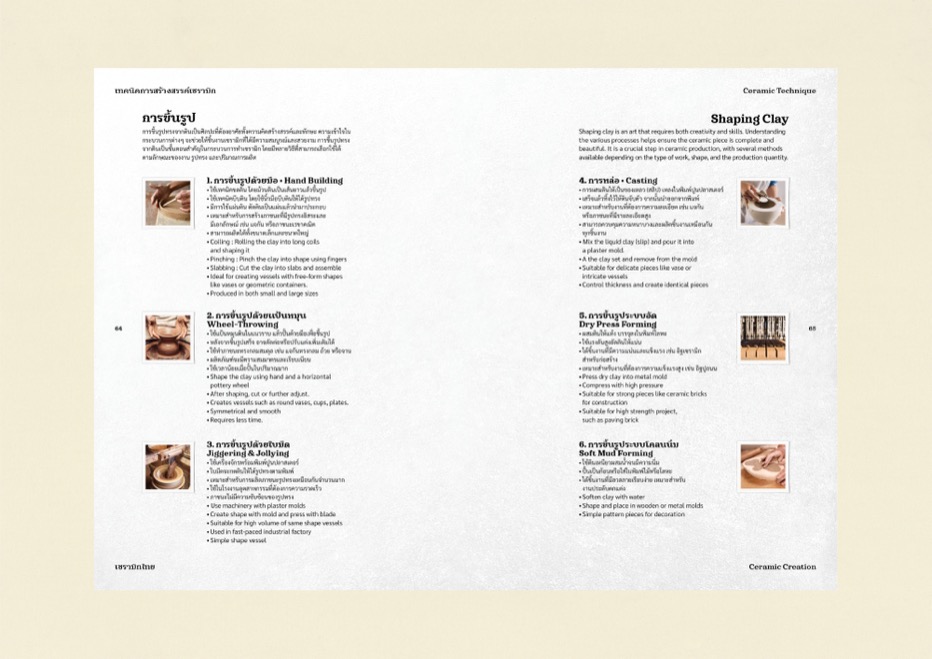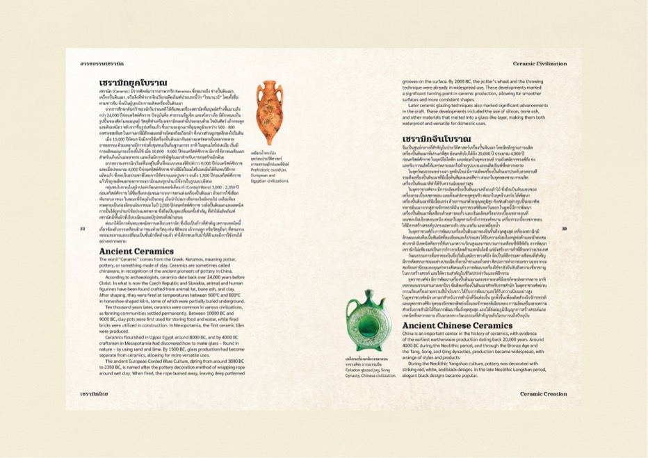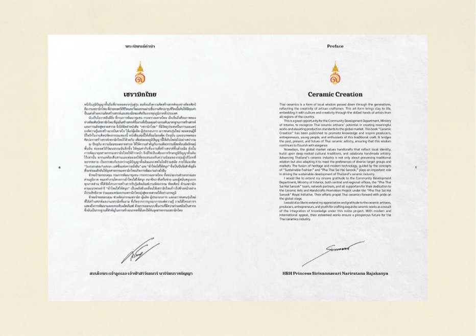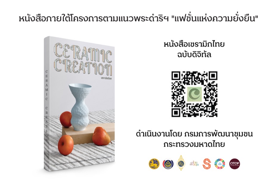 ภูมิปัญญาการสร้างสรรค์งานเซรามิกของไทย ถือเป็นงานหัตถศิลป์ที่มีศักยภาพในการพัฒนาให้เป็นผลิตภัณฑ์ระดับสากล กรมการพัฒนาชุมชน กระทรวงมหาดไทย ตระหนักถึงความสำคัญของการส่งเสริมและสืบสานภูมิปัญญานี้ให้ดำรงคงอยู่ และสร้างมูลค่าเพิ่มแก่เศรษฐกิจฐานราก จึงได้จัดทำหนังสือ “เซรามิกไทย” เล่มนี้ขึ้น เพื่อเป็นการรวบรวมองค์ความรู้ด้านการพัฒนาและออกแบบผลิตภัณฑ์เซรามิก อันเป็นส่วนหนึ่งของโครงการสร้างการรับรู้ผลิตภัณฑ์งานหัตถกรรม หัตถศิลป์ ด้านเซรามิก ตามแนวพระดำริ “ผ้าไทยใส่ให้สนุก”