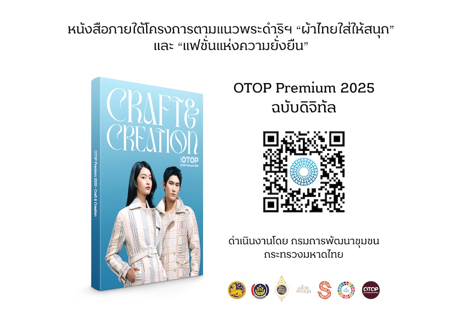 หนังสือ OTOP Premium 2025 : Craft & Creation เล่มนี้ จึงเป็นการรวบรวมผืนผ้าและผลิตภัณฑ์ภายใต้โครงการฯ ที่สัมฤทธิผลเป็นที่ประจักษ์ เกิดจากการพัฒนาศักยภาพผู้ผลิต ผู้ประกอบการ OTOP อย่างรอบด้าน ด้วยเป้าหมายเพื่อให้สินค้าชุมชนไทย สามารถขับเคลื่อนเศรษฐกิจรากฐานของประเทศด้วยคุณภาพและนวัตกรรม สร้างคุณค่าทางวัฒนธรรมอย่างยั่งยืน